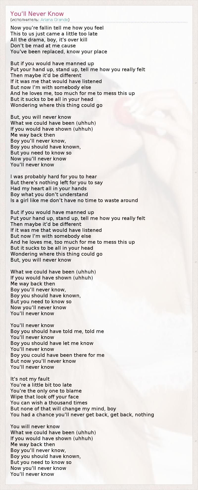 А как ты думаешь, о чем песня "You’ll Never Know" ?