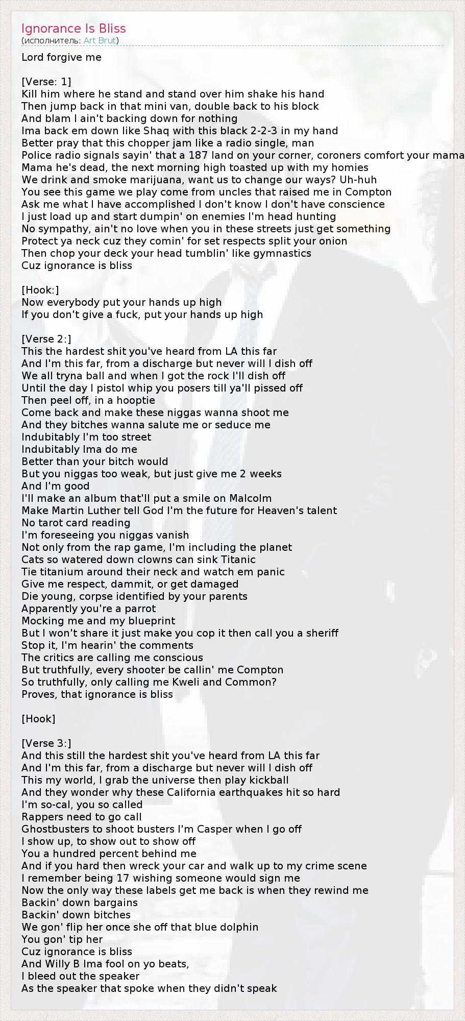 А как ты думаешь, о чем песня "Ignorance Is Bliss" ?