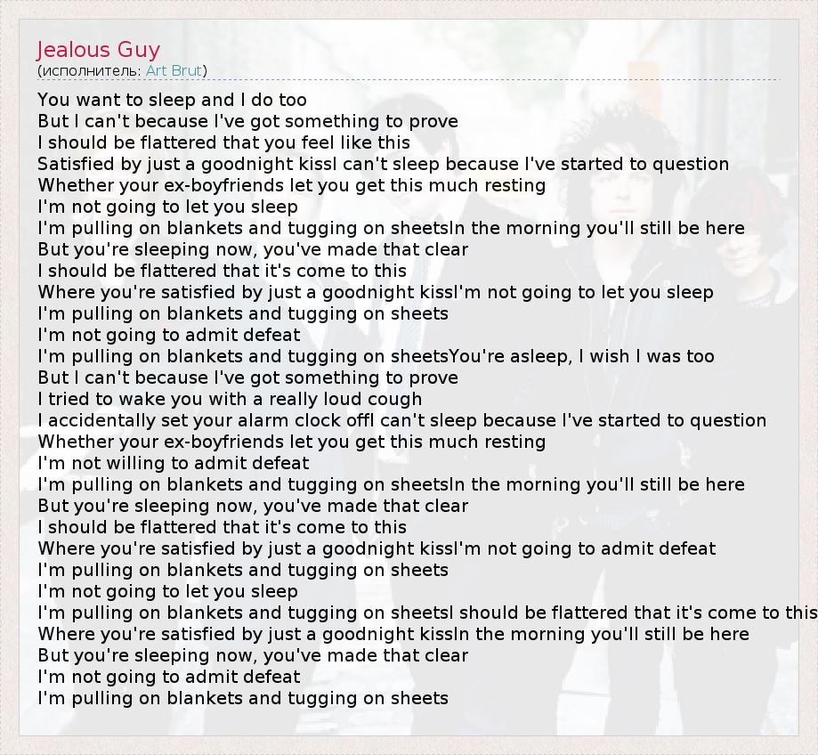 А как ты думаешь, о чем песня "Jealous Guy" ?