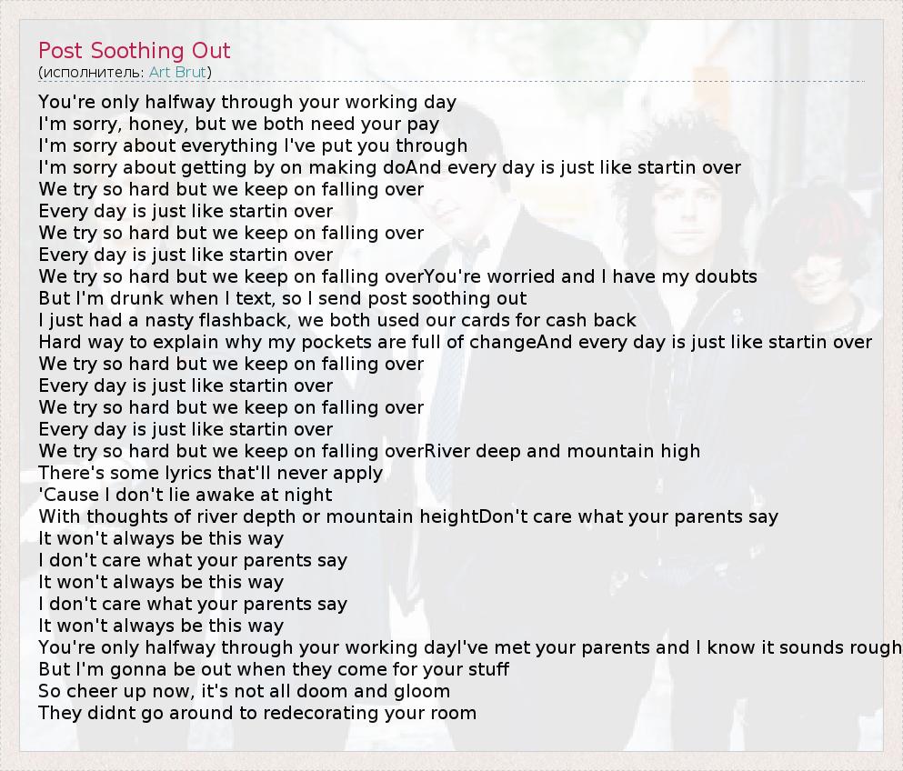 А как ты думаешь, о чем песня "Post Soothing Out" ?
