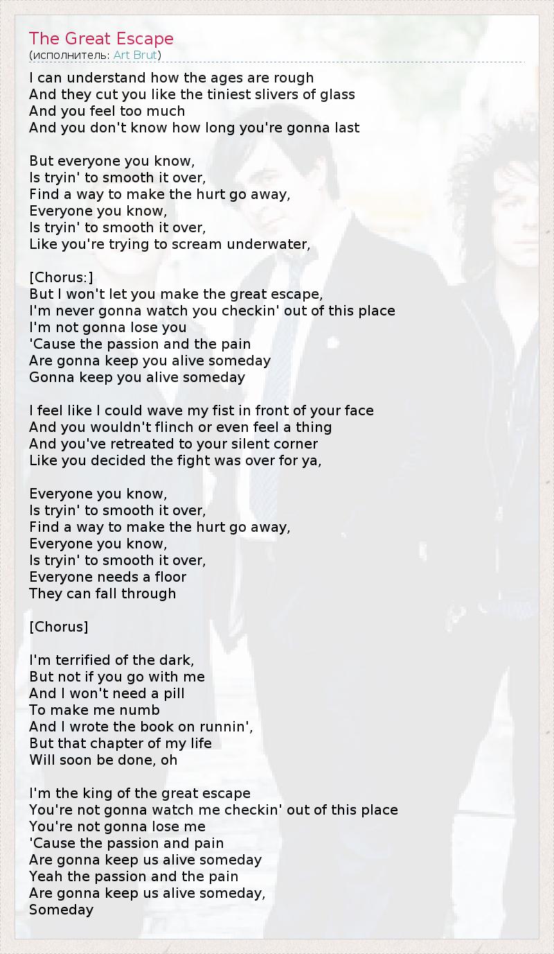 А как ты думаешь, о чем песня "The Great Escape" ?