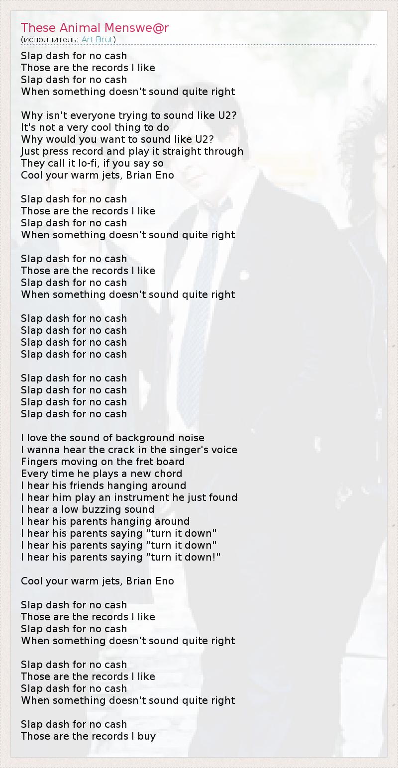 ГлавнаяИсполнителиArt BrutThese Animal Menswe@r