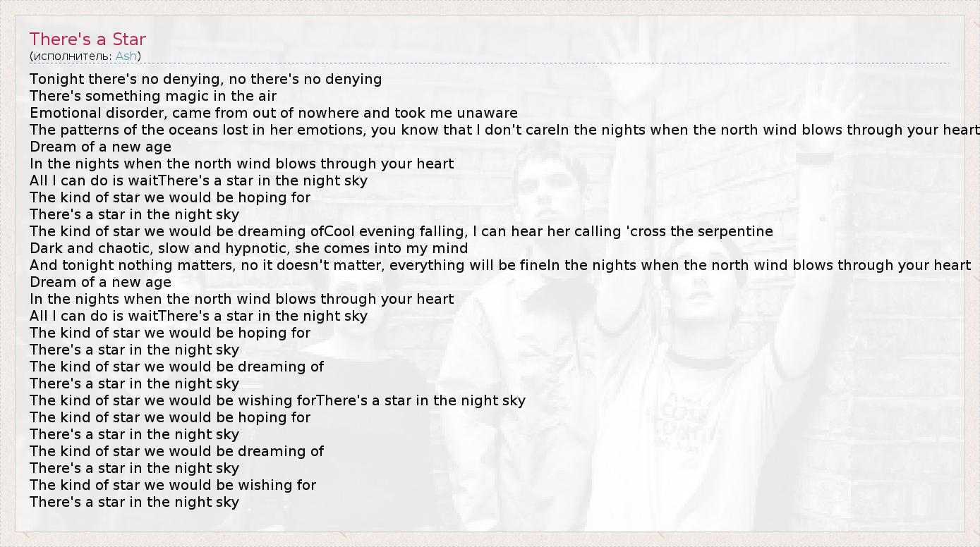 Это интересно:Музыку этого коллектива из североирландского города Даунпатрик зачастую описывают как брит-поп, хотя на самом деле стиль "Ash" представляет собой нечто среднее между панком, гранжем и хард-роком. В конце 80-х двенадцатилетние мальчишки Тим Вилер (р. 4 января 1977) и Марк Гамильтон (р. 21 марта 1977) еще предпочитали гонять футбол, когда вдруг открыли для себя мир музыки. Подсев на творчество... продолжение
