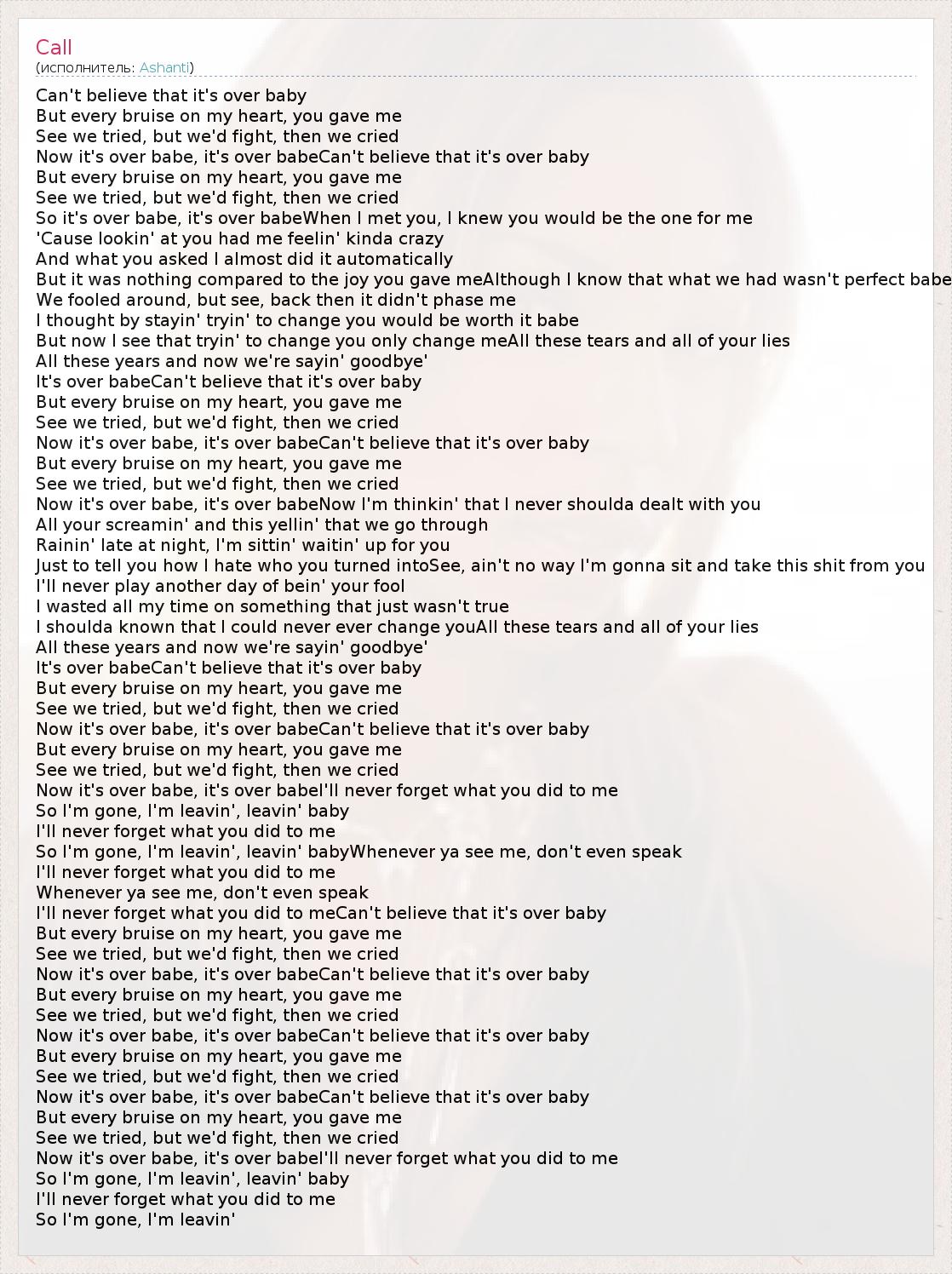 Now it's over babe, it's over babeNow I'm thinkin' that I never shoulda dealt with you