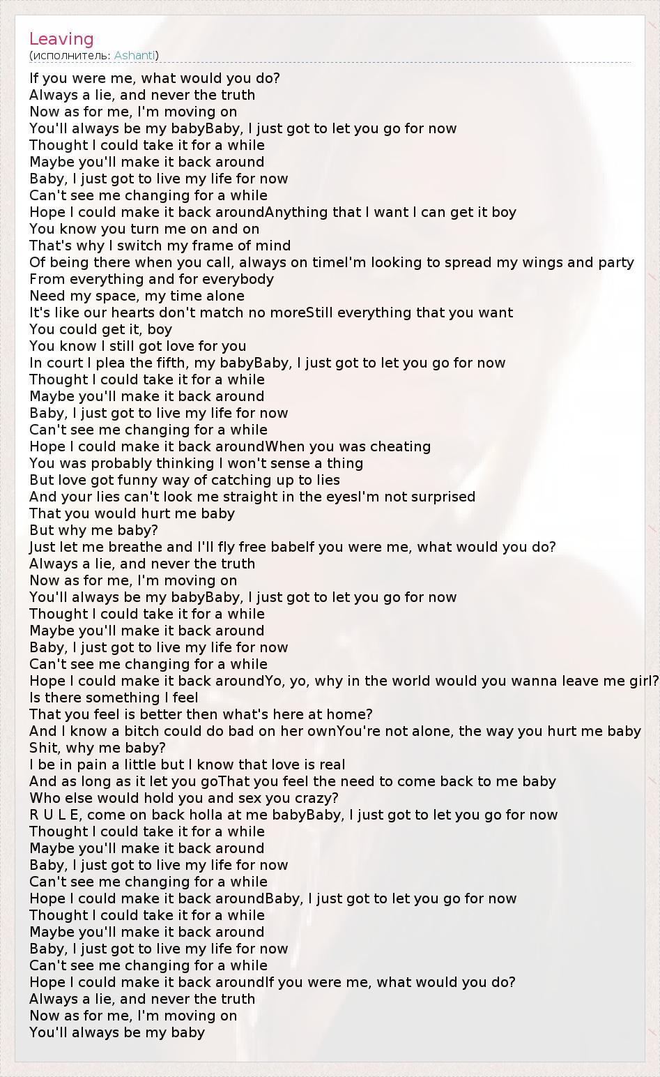 Hope I could make it back aroundBaby, I just got to let you go for now