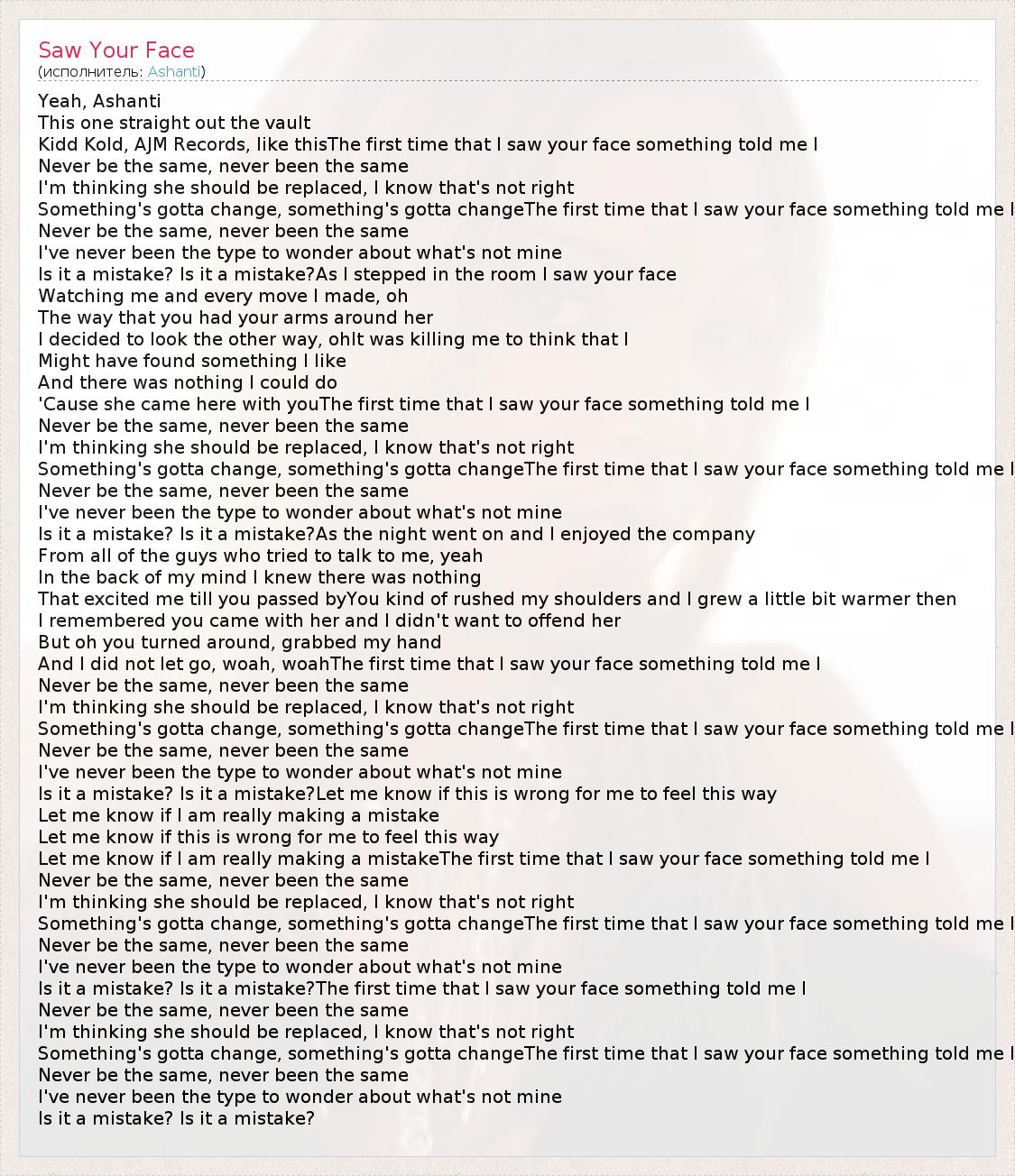 А как ты думаешь, о чем песня "Saw Your Face" ?