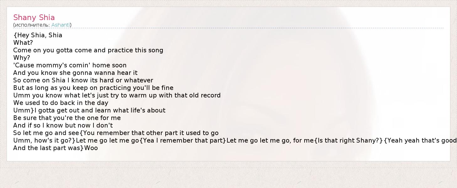 А как ты думаешь, о чем песня "Shany Shia" ?