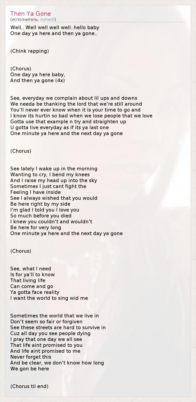 А как ты думаешь, о чем песня "Then Ya Gone" ?
