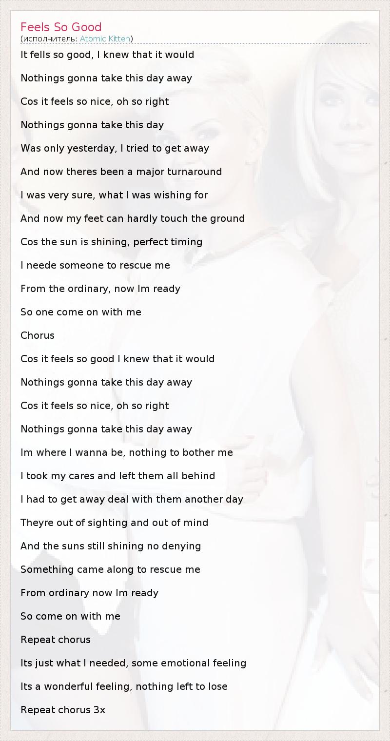 А как ты думаешь, о чем песня "Feels So Good" ?