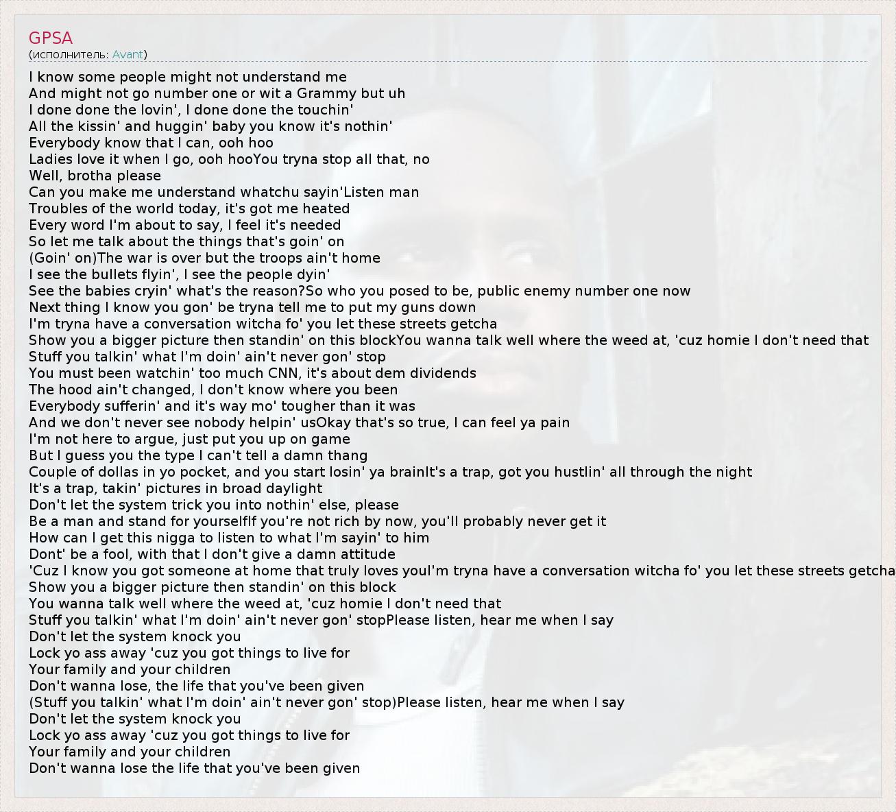 А как ты думаешь, о чем песня "GPSA" ?
