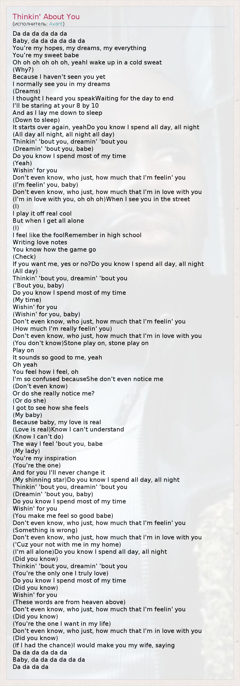 А как ты думаешь, о чем песня "Thinkin' About You" ?