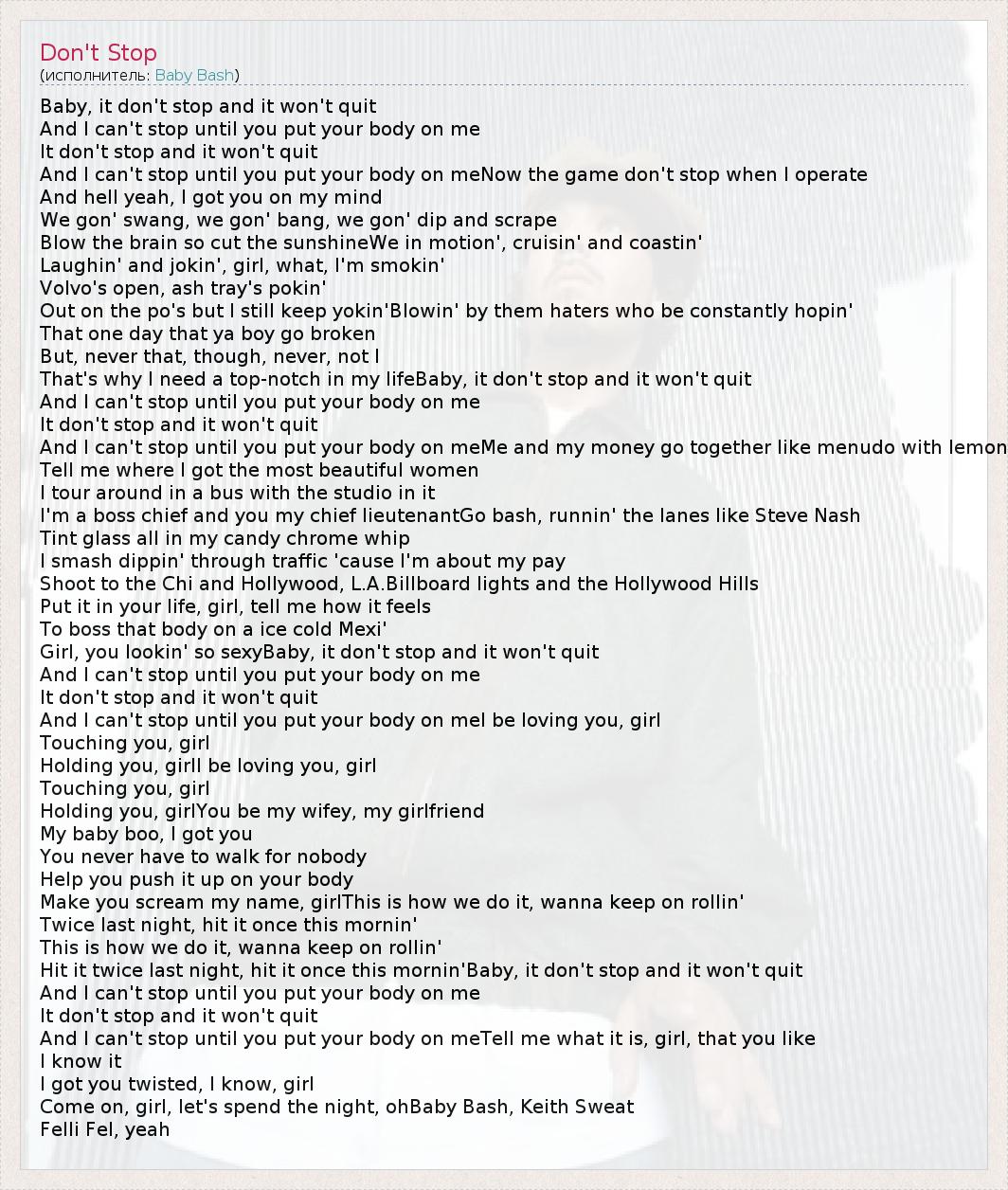 Come on, girl, let's spend the night, ohBaby Bash, Keith Sweat