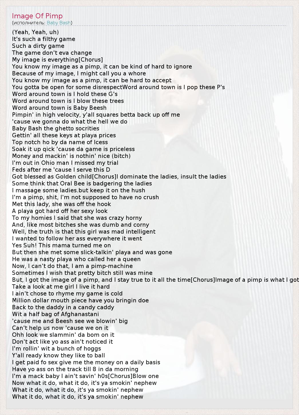 А как ты думаешь, о чем песня "Image Of Pimp" ?