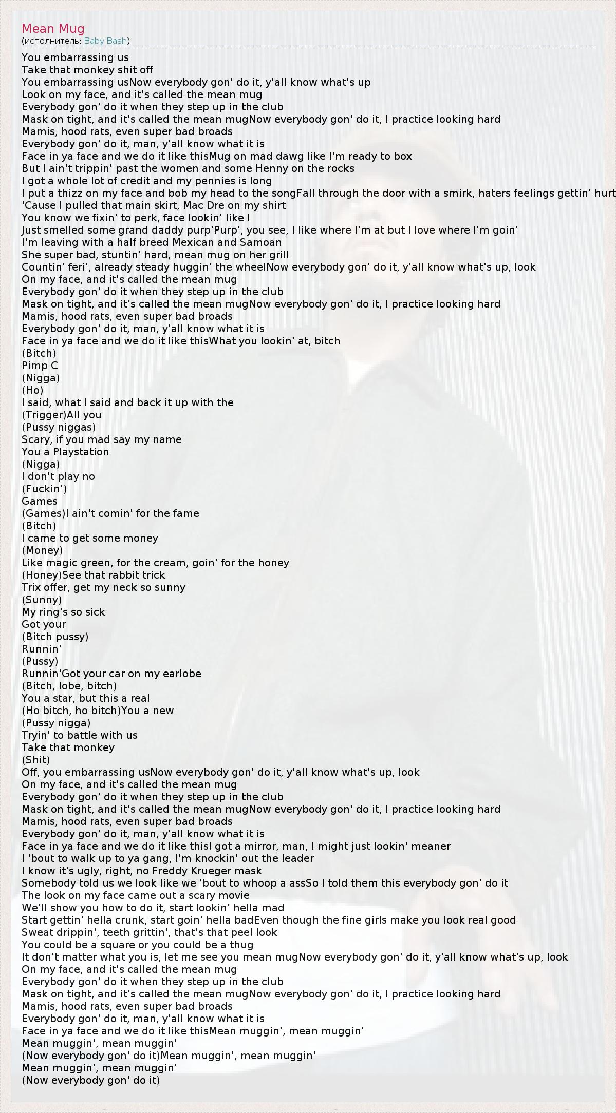 А как ты думаешь, о чем песня "Mean Mug" ?
