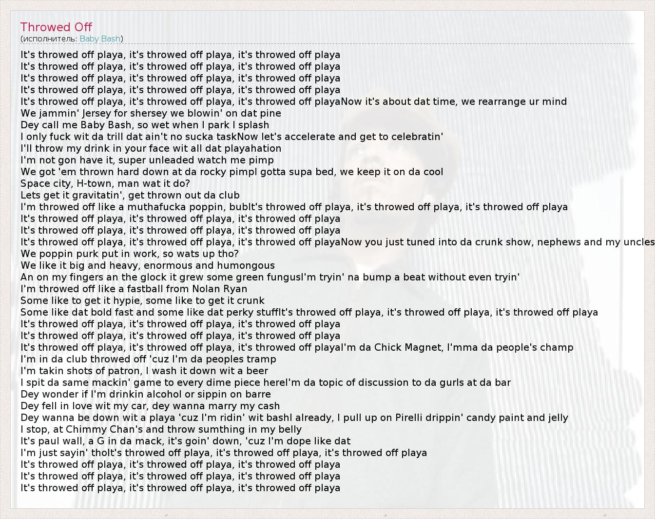 It's throwed off playa, it's throwed off playa, it's throwed off playa