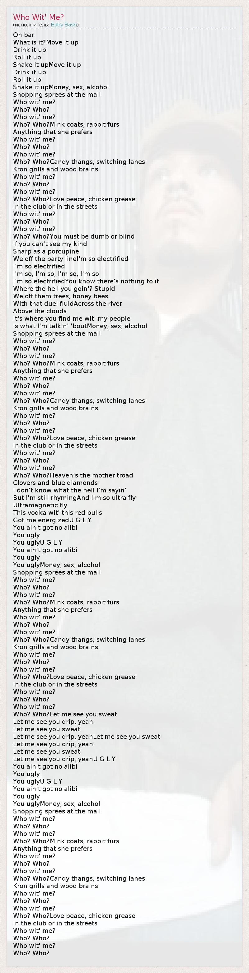 А как ты думаешь, о чем песня "Who Wit' Me?" ?