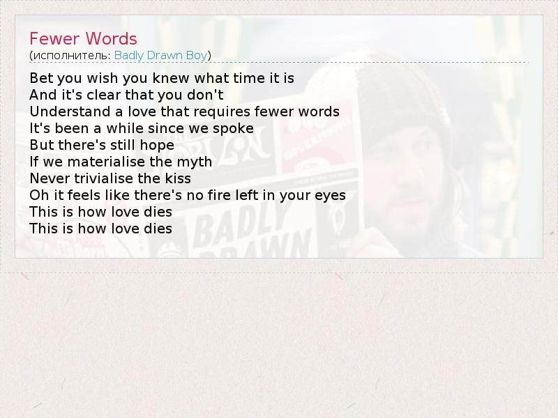 А как ты думаешь, о чем песня "Fewer Words" ?