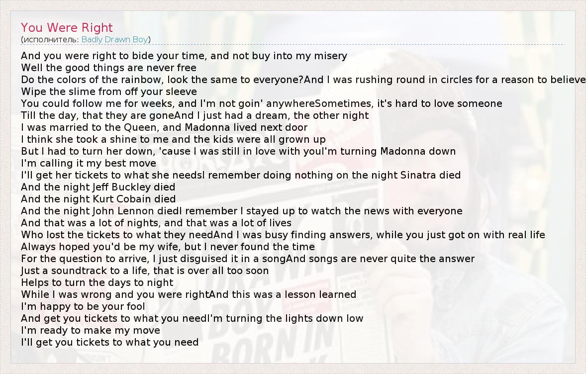 For the question to arrive, I just disguised it in a songAnd songs are never quite the answer