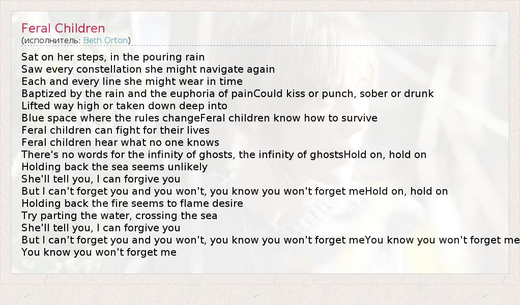 А как ты думаешь, о чем песня "Feral Children" ?