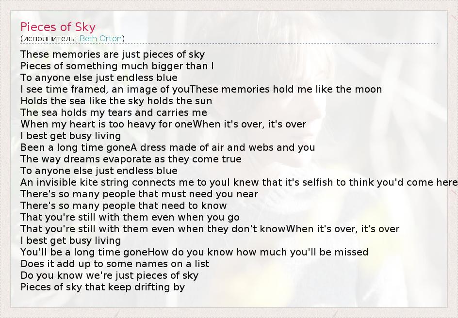 А как ты думаешь, о чем песня "Pieces of Sky" ?