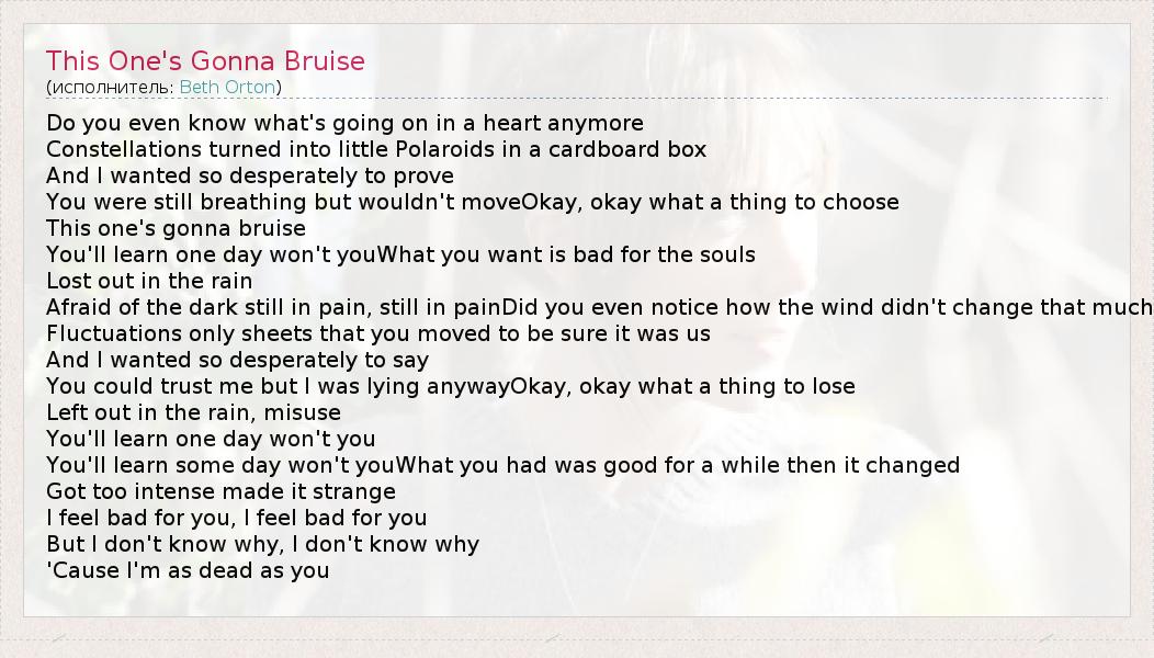 ГлавнаяИсполнителиBeth OrtonThis One's Gonna Bruise