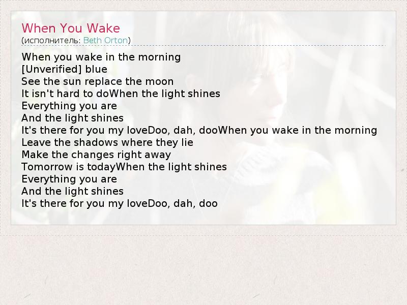 А как ты думаешь, о чем песня "When You Wake" ?
