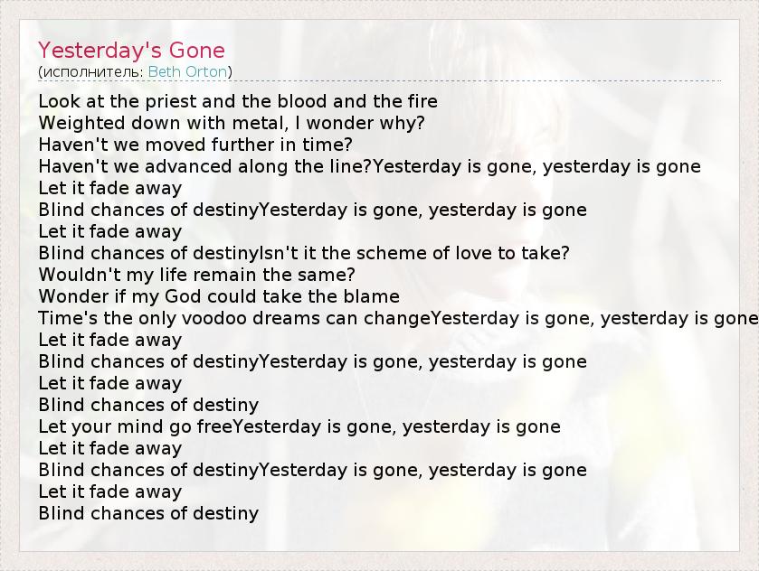 А как ты думаешь, о чем песня "Yesterday's Gone" ?