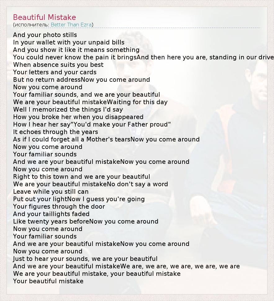 А как ты думаешь, о чем песня "Beautiful Mistake" ?
