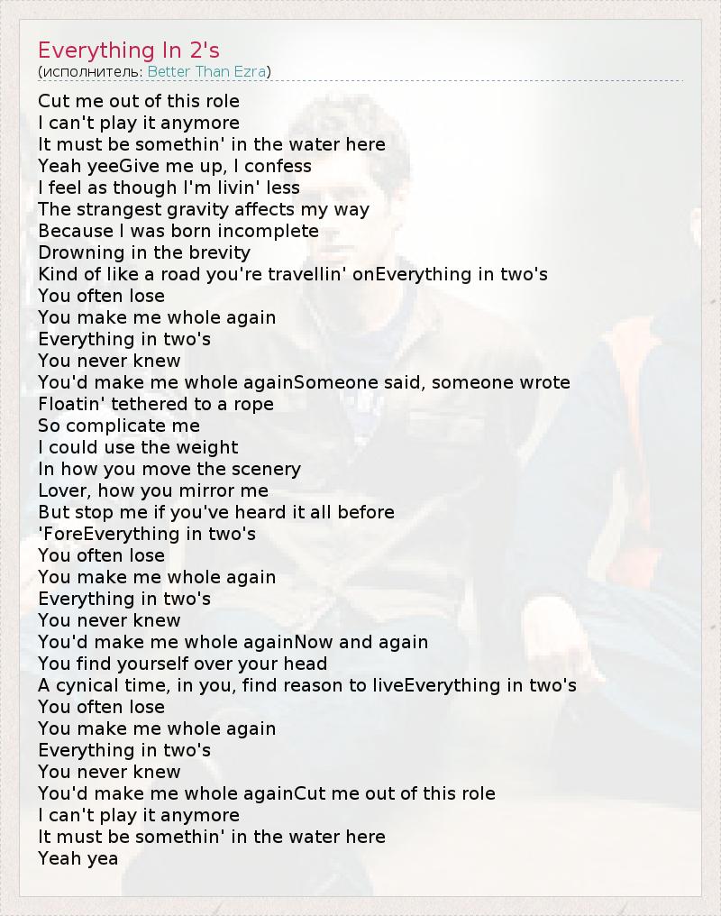 А как ты думаешь, о чем песня "Everything In 2's" ?
