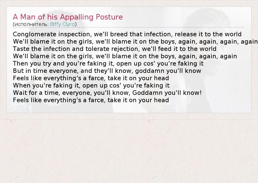 ГлавнаяИсполнителиBiffy ClyroA Man of his Appalling Posture