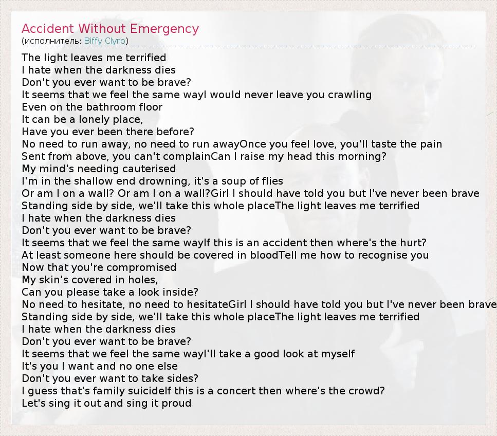А как ты думаешь, о чем песня "Accident Without Emergency" ?