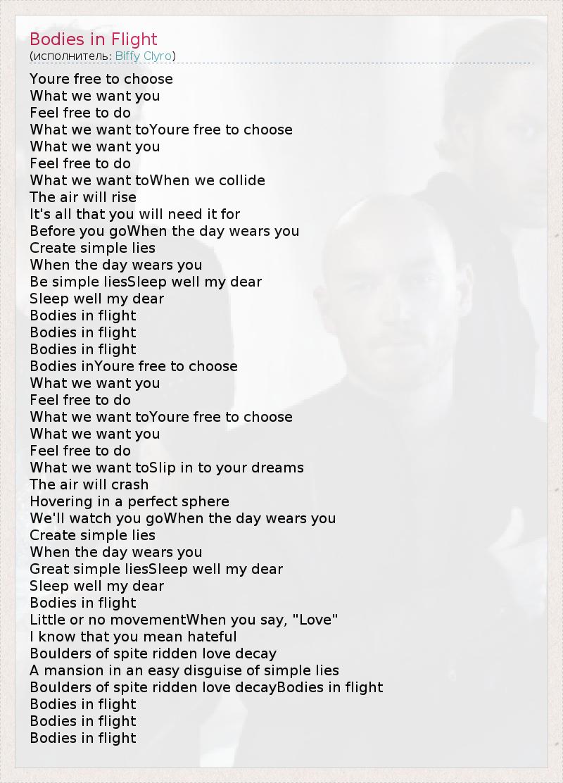 А как ты думаешь, о чем песня "Bodies in Flight" ?