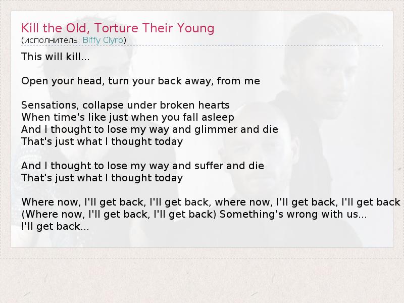 ГлавнаяИсполнителиBiffy ClyroKill the Old, Torture Their Young