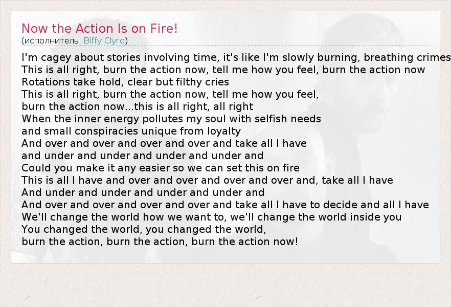 А как ты думаешь, о чем песня "Now the Action Is on Fire!" ?
