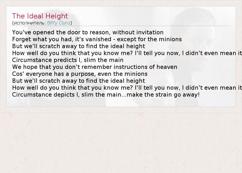 А как ты думаешь, о чем песня "The Ideal Height" ?