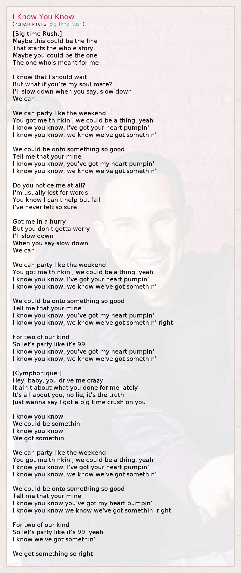 А как ты думаешь, о чем песня "I Know You Know" ?