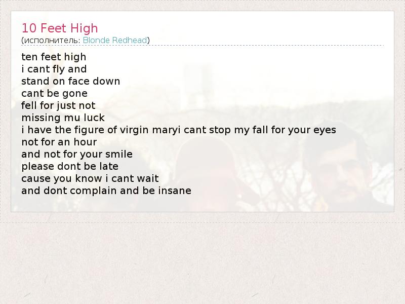 А как ты думаешь, о чем песня "10 Feet High" ?
