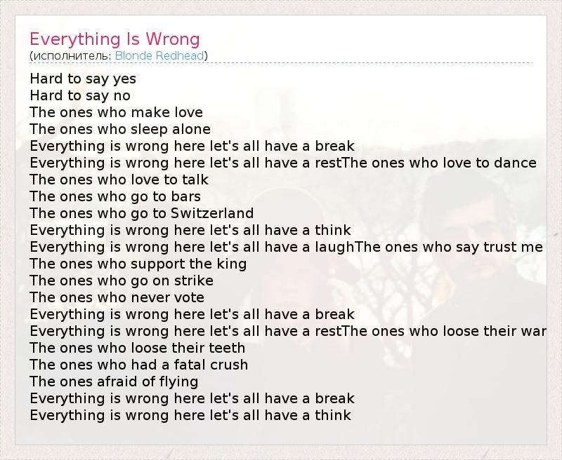 А как ты думаешь, о чем песня "Everything Is Wrong" ?