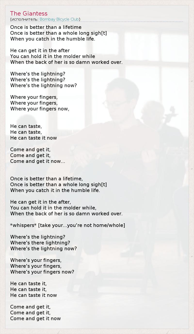 Это интересно:Bombay Bicycle Club сформировался в 2005 году, когда его участникам Джеку Стидмену (Jack Steadman, вокал, гитара), Джейми МакКоллу (Jamie MacColl, гитара), Эду Нэшу (Ed Nash, бас) и Сюрену де Сараму (Suren de Saram, ударные) было всего по пятнадцать лет и впереди у них было еще три долгих года школы. Но это не останавливало группу; перед тем, как начать выступать на небольших концертах в своей школе, она успела пройти несколько... продолжение