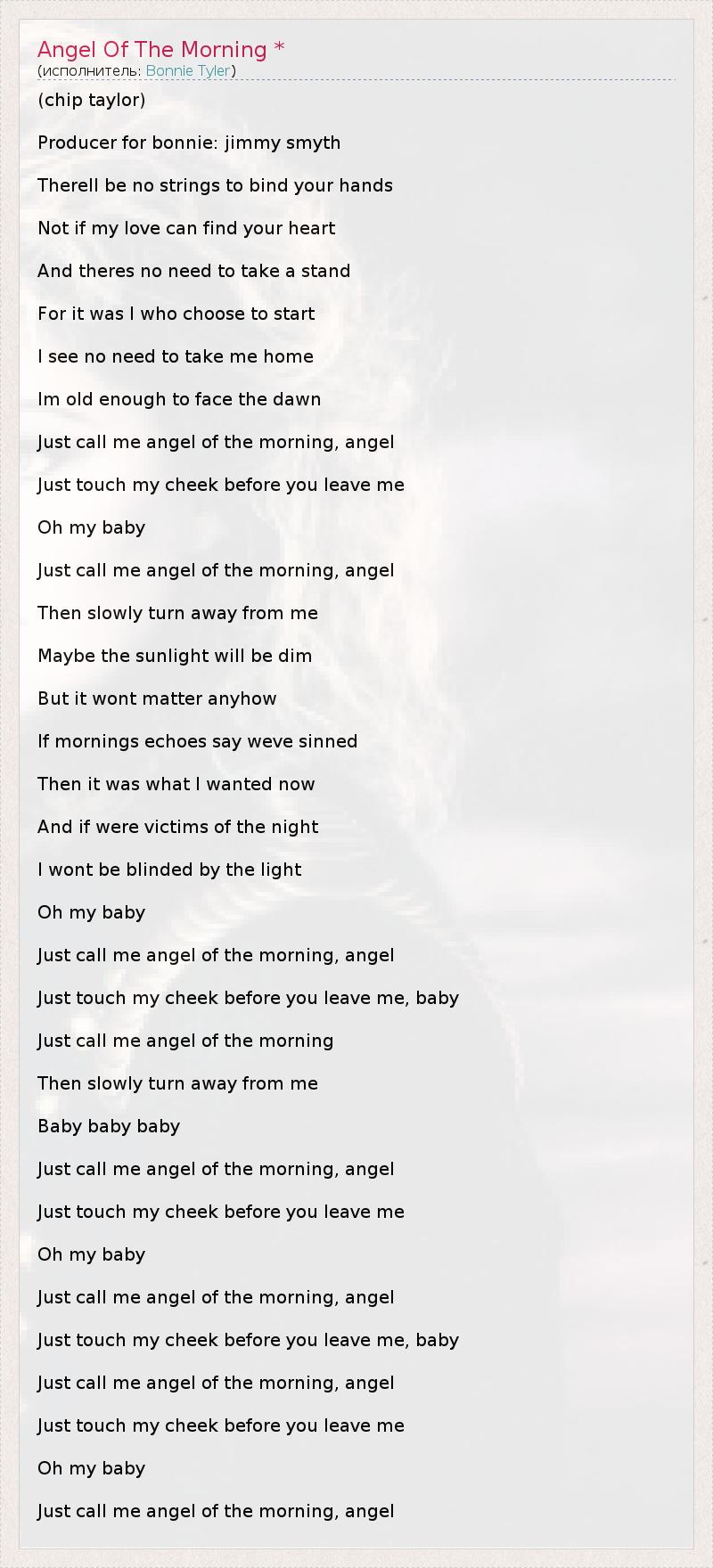А как ты думаешь, о чем песня "Angel Of The Morning *" ?