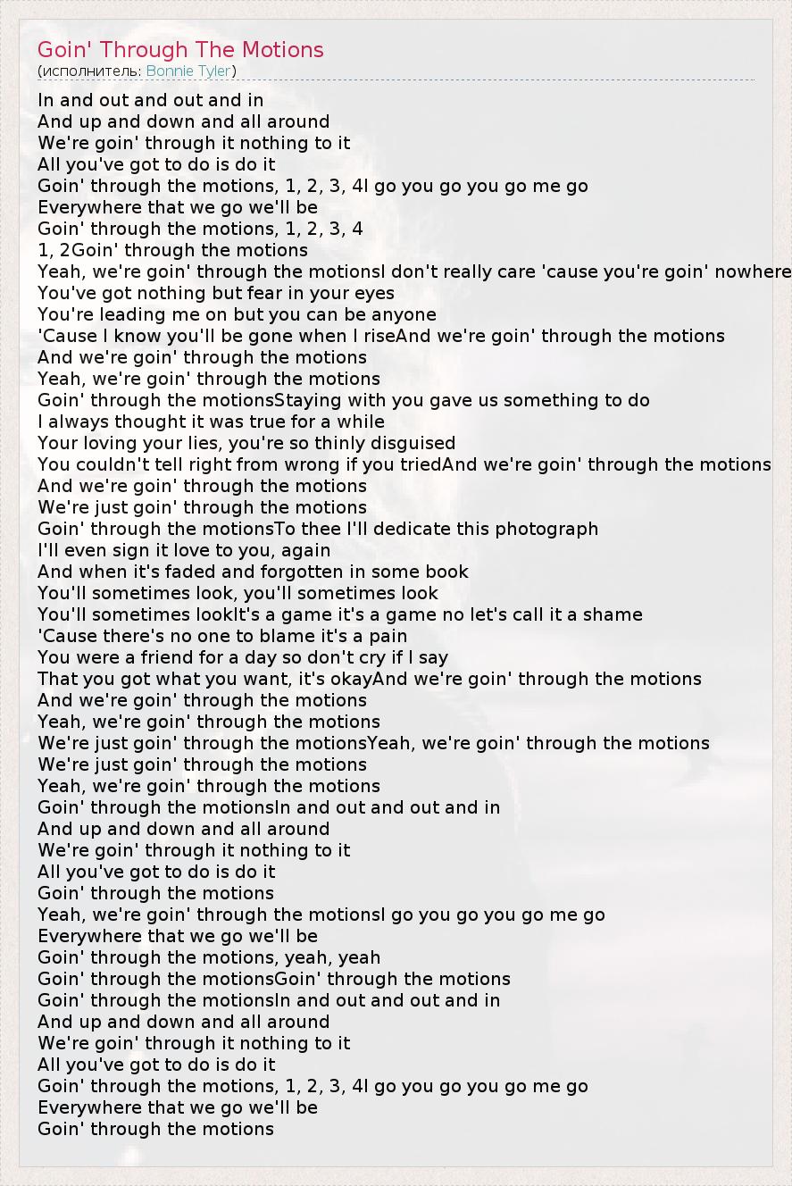 А как ты думаешь, о чем песня "Goin' Through The Motions" ?