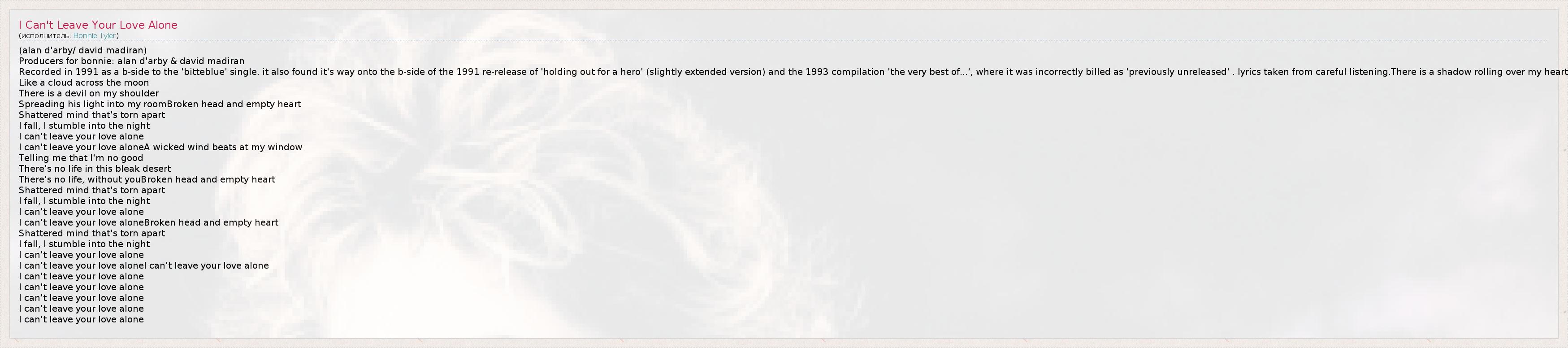 ГлавнаяИсполнителиBonnie TylerI Can't Leave Your Love Alone