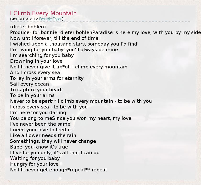 А как ты думаешь, о чем песня "I Climb Every Mountain" ?