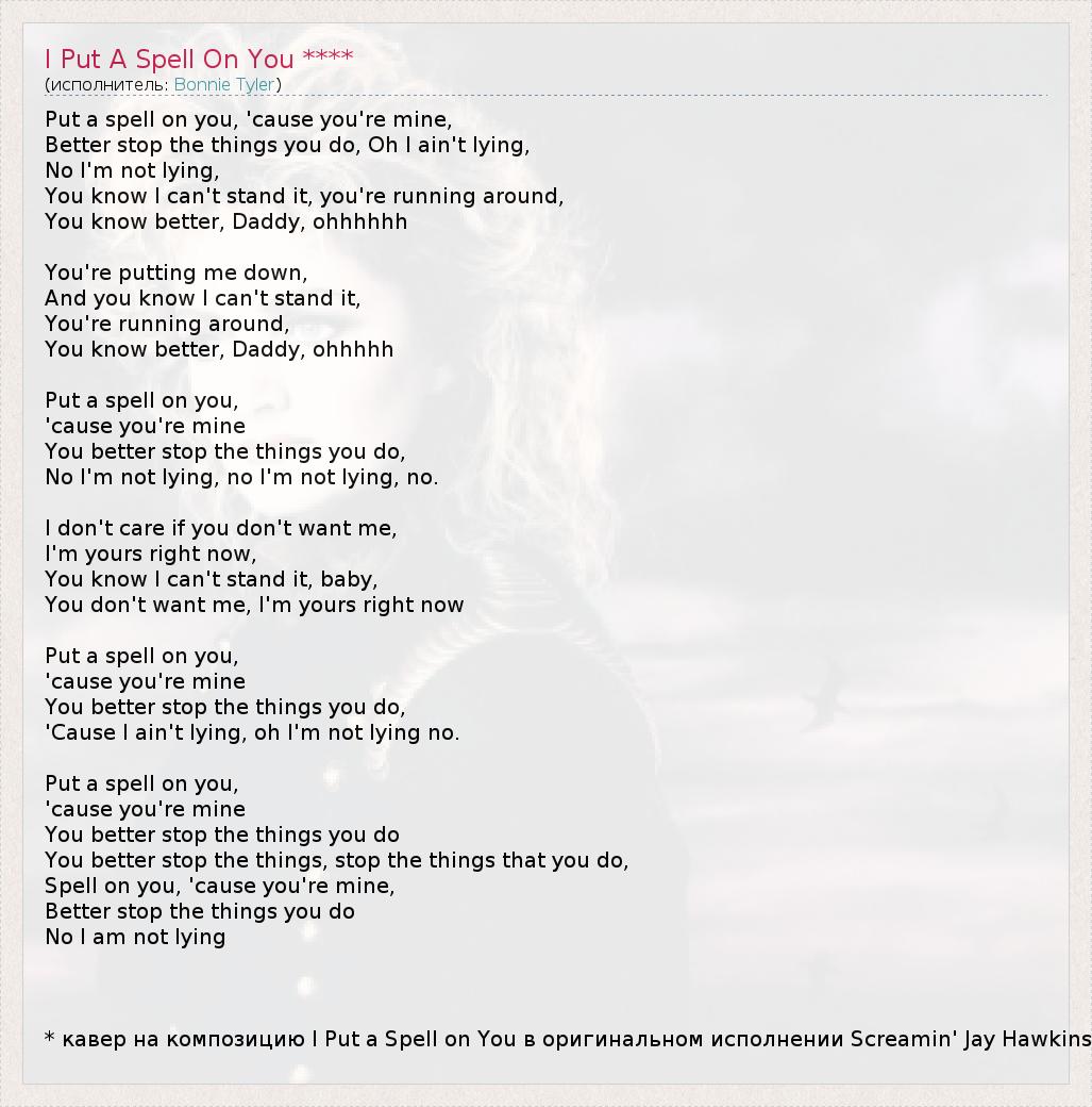 А как ты думаешь, о чем песня "I Put A Spell On You ****" ?