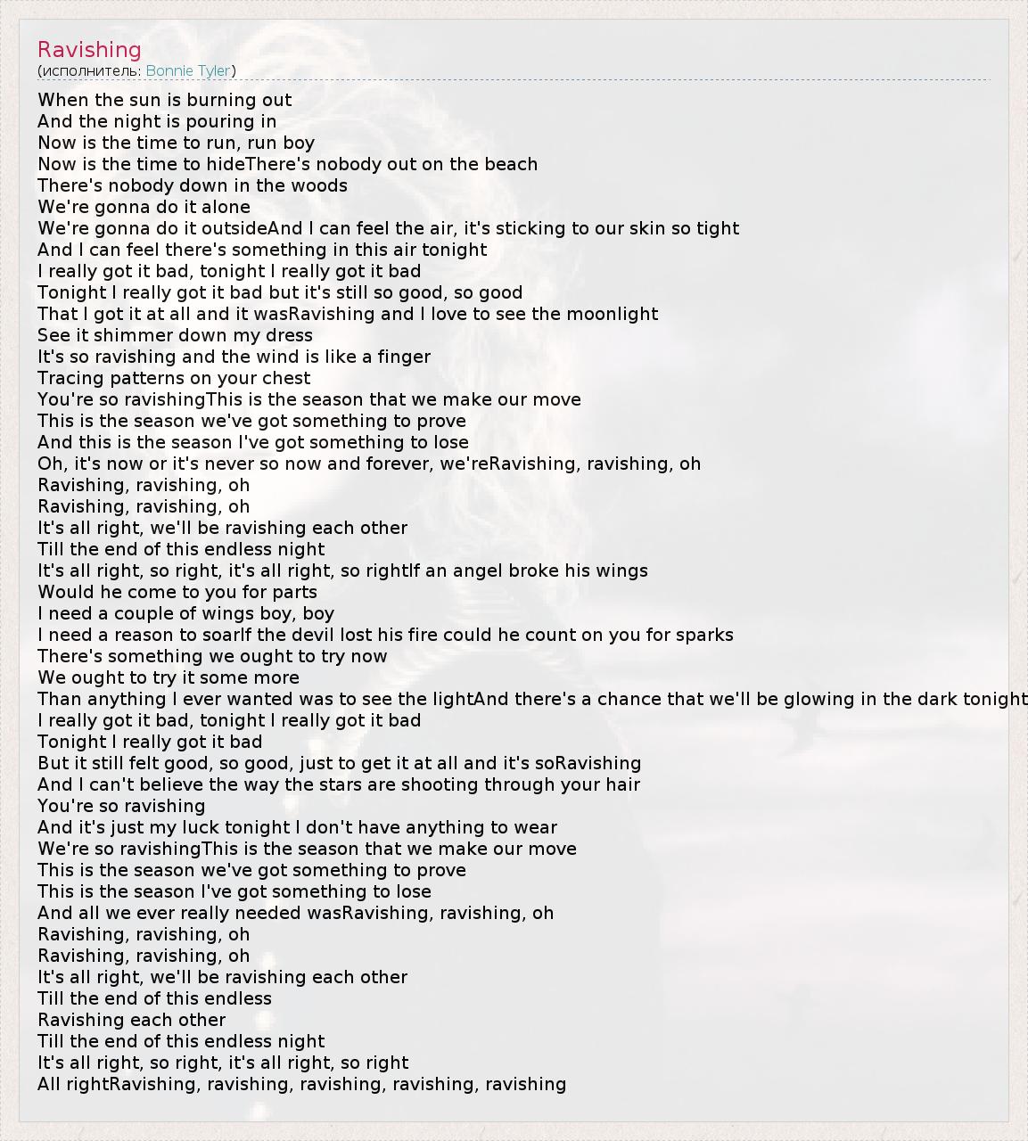 Oh, it's now or it's never so now and forever, we'reRavishing, ravishing, oh