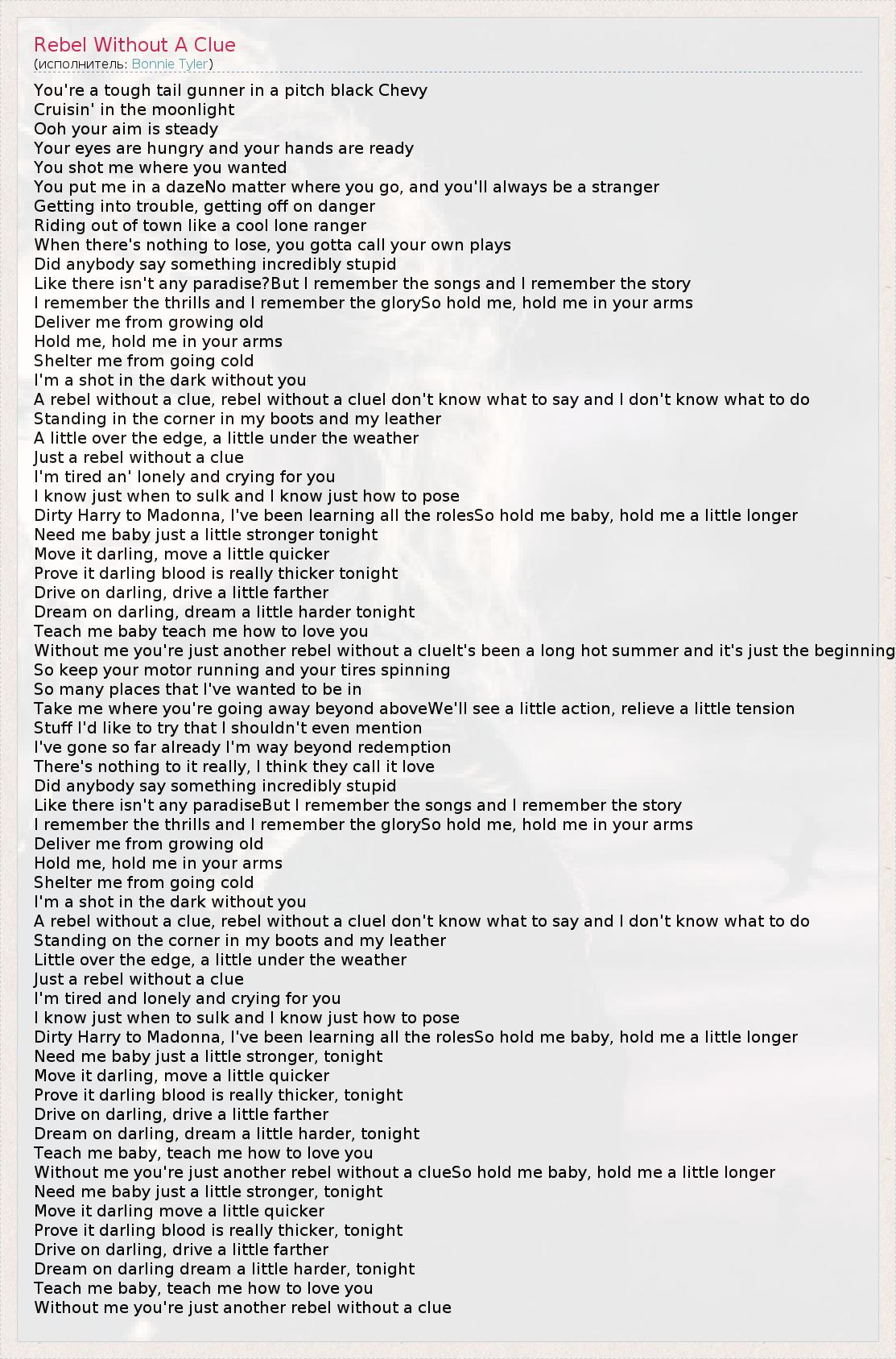 А как ты думаешь, о чем песня "Rebel Without A Clue" ?