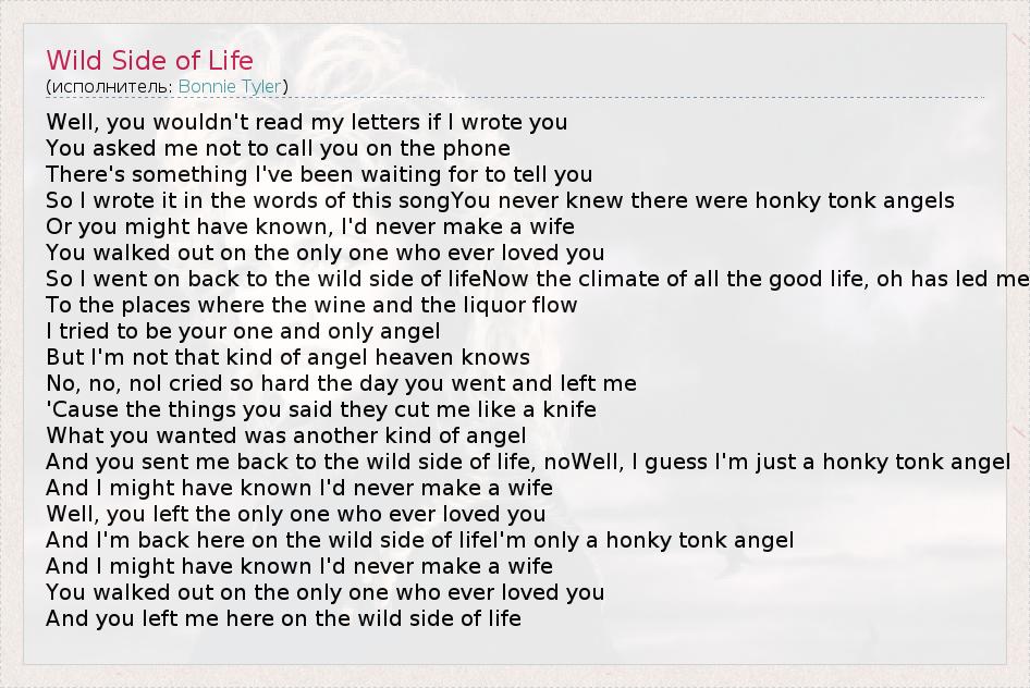 А как ты думаешь, о чем песня "Wild Side of Life" ?