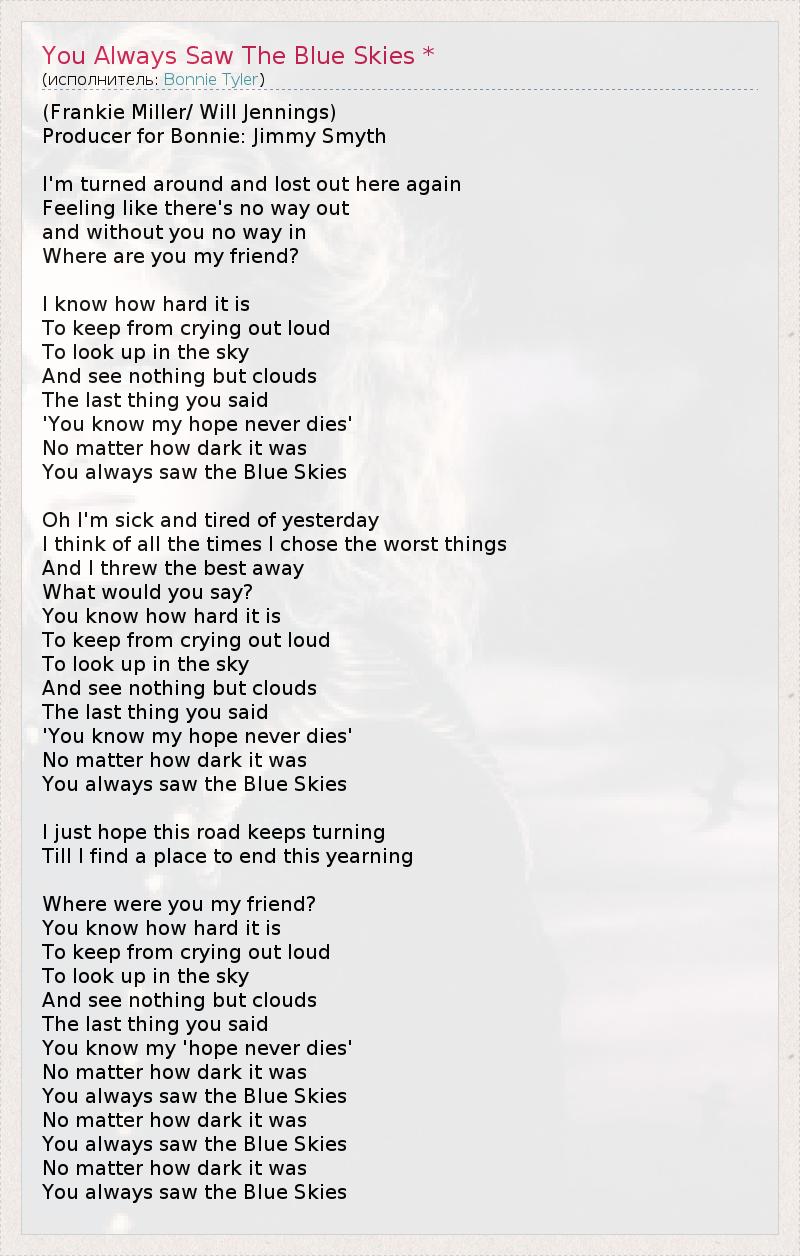 А как ты думаешь, о чем песня "You Always Saw The Blue Skies *" ?