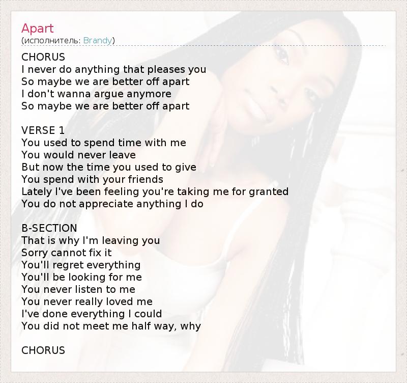 А как ты думаешь, о чем песня "Apart" ?