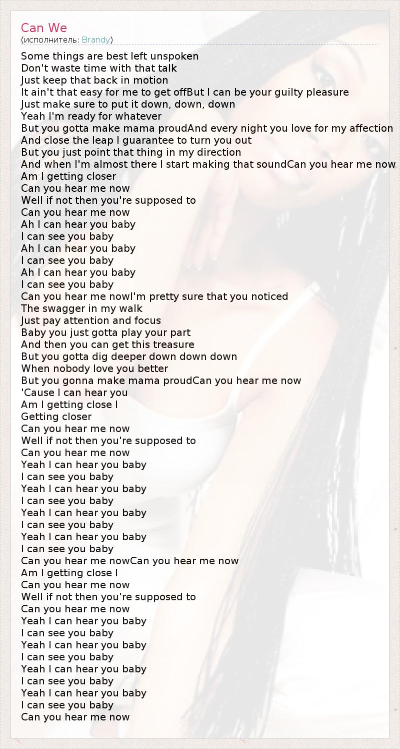 Это интересно:Брэнди - (англ. - Brandy Rayana Norwood род. 11 февраля 1979 г.) - американская певица, автор песен, продюсер и актриса. Обладательница премии "Грэмми". Согласно данным американской ассоциации звукозаписывающих компаний (RIAA) Брэнди является одной из самых успешных певиц Америки, продавшей около 9 миллионов копий альбомов на территории США и 25 миллионов по всему миру. Brandy начала петь, раньше,... продолжение
